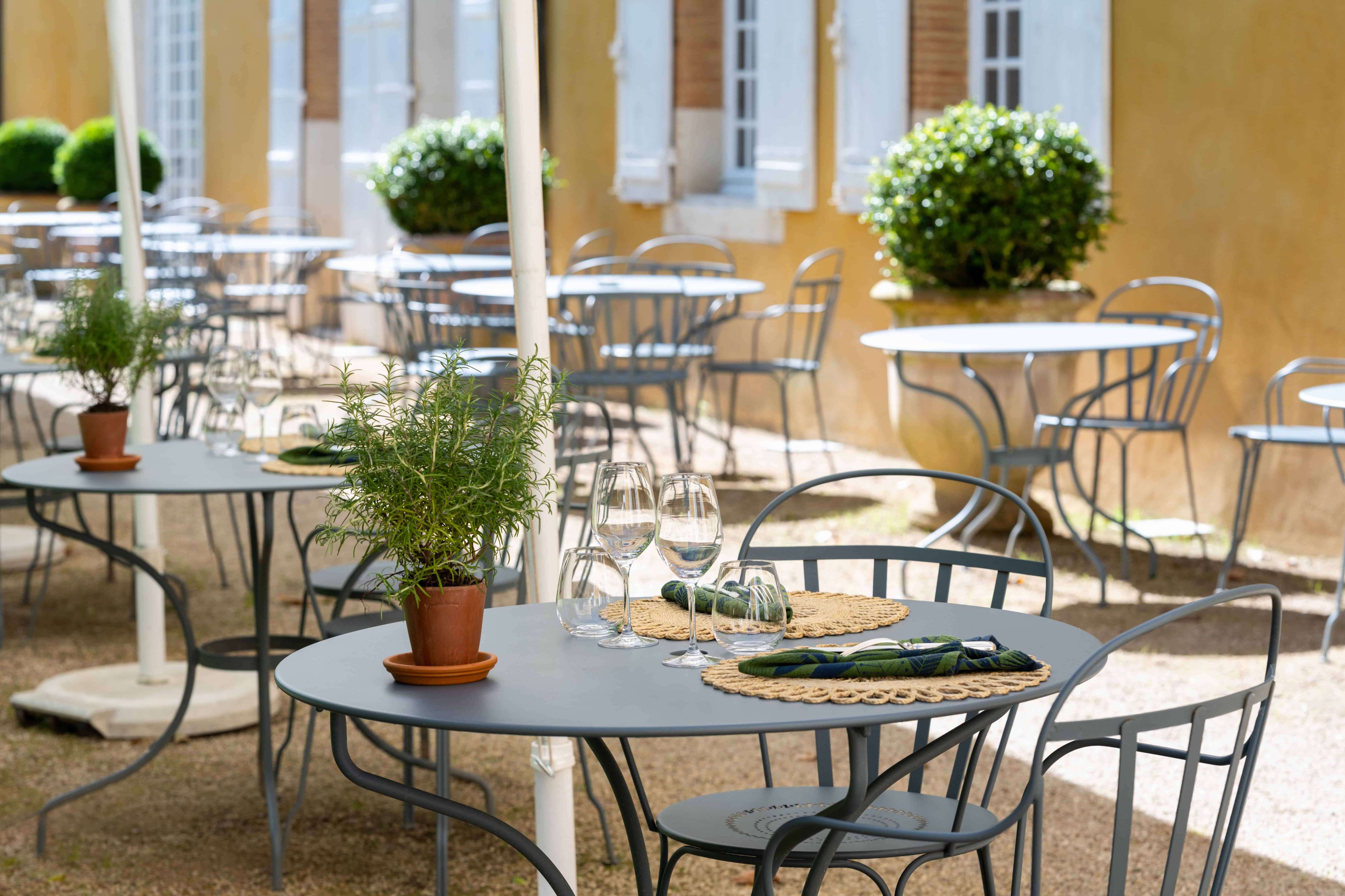 Before having dinner, meet up with your friends under the archway for a glass of champagne in this improvised nature lounge. Enjoy our Gascony fruity wines, in front of a magical panorama of secular plane trees and cool fountains. Our Restaurant also offers a large Terrace, where you may have an alfresco lunch or dinner.